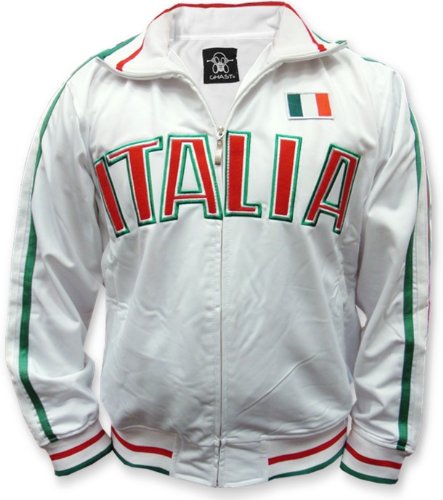 Italia Track Jacket, Italian World Cup Soccer Track Jacket, X-Large, White Product Reviews Of This Italia soccer jacket is made of heavyweight 100% poly tricot material. Features a large Italia appliqué on the front and has an embroidered Italian flag on the upper front left chest. Sleeves have sewn on stripes and the bottom has striped ribbing. The jacket zips up front and has pockets on the sides. It*s warm and comfortable to wear and looks good out on the field. and then check the lowest price immediately. Within a confined time period solely!